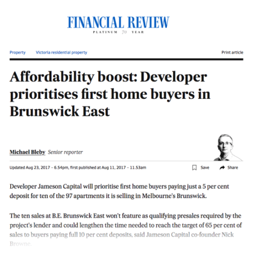 Affordability boost: Developer prioritises first home buyers in Brunswick East